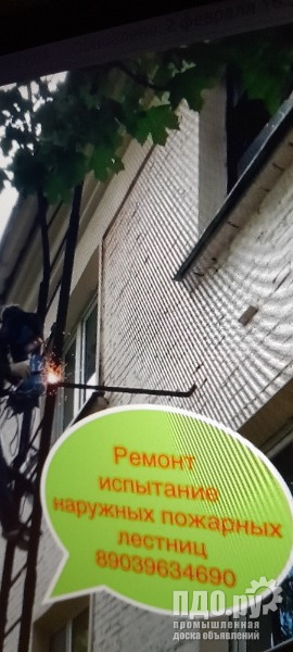 Производим ремонт испытание наружных пожарных лестниц , реставрация старых пожарных лестниц (восстановление крепления балок к фасаду зданий и сооружений , окраска, сварка , достройка недостающий элементов лестницы) изготовление и монтаж новых наружных пожарных лестниц, проведем испытание нагрузкой по ГОСТ Р 53254–2009 , а так-же в этот ГОСТ входит испытание ограждений кровли крыш. Данные работы проводятся за в пять лет. Испытания должны проводить организации, имеющие соответствующий аттестат на испытательное оборудование , аттестованные специалисты